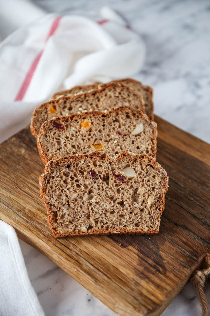 Kiedy nie mam czasu na przygotowanie chleba na zakwasie bardzo chętnie sięgam po szybszą drożdżową wersję : ) Chleb pełnoziarnisty robi się prawie sam i długo trzyma świeżość, co jest dla mnie dużym atutem, kiedy potrzebuję pieczywa na kolejny dzień ; ) Dodatek suszonych owoców i orzechów nadaje mu niepowtarzalnego charakteru. Polecam!!!