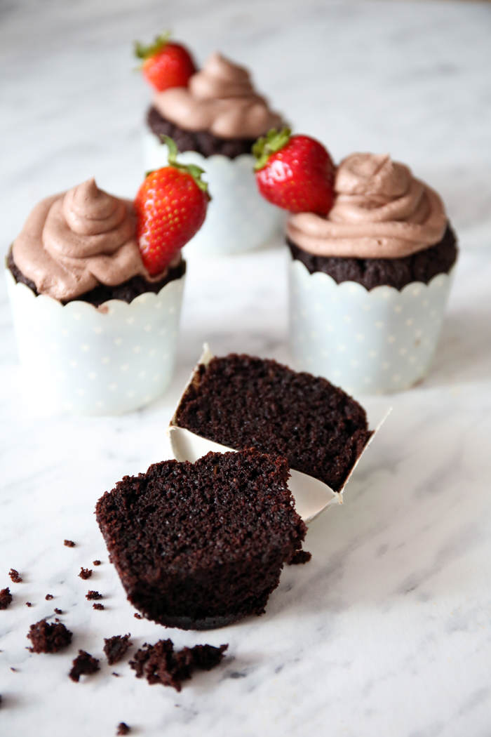 Bardzo lubię wypieki z dodatkiem warzyw : ) Są to zazwyczaj idealne przepisy dla dzieci, które nie mogą przekonać się do ich smaku, a pod postacią słodkości zyskują nowe oblicze! Czekoladowe muffinki z cukinią są przepyszne! Wilgotne, długo zatrzymują świeżość i jeśli się o to obawiacie – smak cukinii nie jest wyczuwalny : ) Na życzenie mojego Męża podałam je z dodatkiem maślanego kremu, choć przyznaję, że nie jestem jego fanką i dla mnie nie jest on warunkiem koniecznym dla tej pozycji : ) Polecam!!!