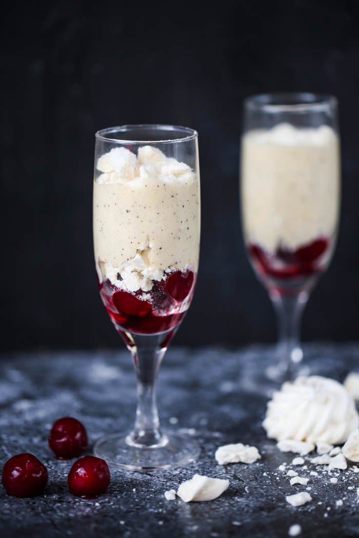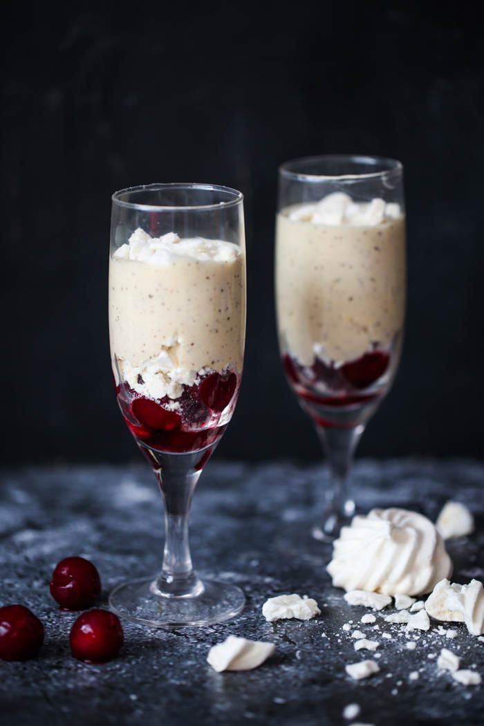 Delikatny kawowy mus w towarzystwie kwaśnych wiśni i słodkiej bezy to połączenie idealne. Deser jest szybki i prosty do przygotowania, świetnie sprawdzi się jako przepis na Walentynki : ) Polecam!!!