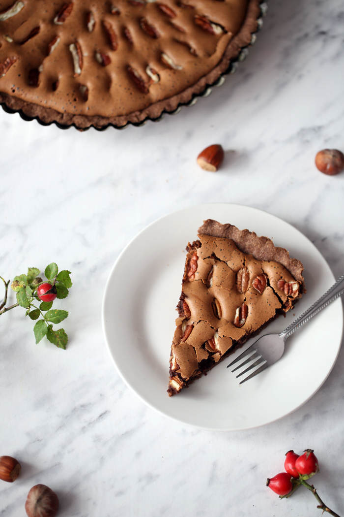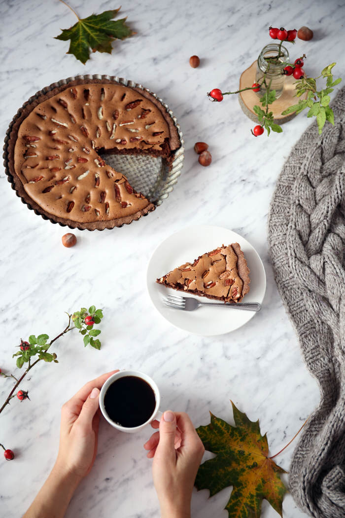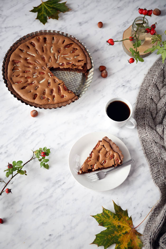 Tarty kojarzą mi się głównie z latem i sezonowymi owocami, ale za bardzo je lubię, aby zrezygnować z nich w pozostałych porach roku ; ) Nieskromnie napiszę, że ta tarta czekoladowa z syropem klonowym i orzechami pekan to najlepsza jesienna tarta i to nie tylko wśród tych które sama miałam okazję przygotować, ale również wśród tych, które kiedykolwiek jadłam! Już przy pierwszym krojeniu nie obyło się bez dokładek i po zdjęciach zostały tylko okruszki, a to oznacza, że koniecznie musicie jej spróbować : ) Polecam!!!