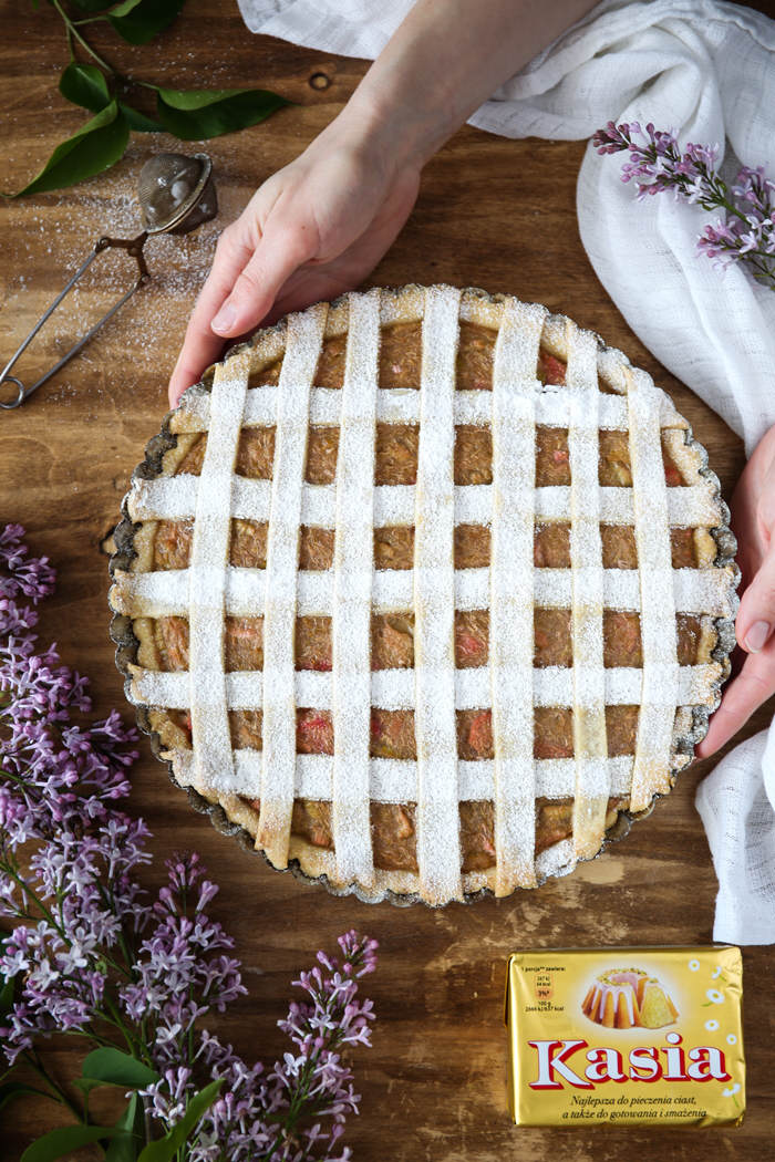 Uwielbiam wszystkie ciasta z rabarbarem : ) Dodatkowo nie ma nic lepszego niż połączenie jego kwaskowatego, orzeźwiającego smaku z pysznym kruchym ciastem. Właśnie dlatego z myślą o „Światowym Dniu Pieczenia z Kasią” oraz moim Mężu, który zawsze ubolewa nad tym, że sezon na rabarbar za szybko się kończy, przygotowałam tartę, której naprawdę trudno się oprzeć! To ogromne szczęście móc w tak prosty sposób sprawiać na co dzień radość moim domownikom – wystarczy dobre ciasto i uśmiech zawsze pojawia się na twarzy : ) Dzięki swojej prostocie tarta ujęła również najmłodszą część rodziny i dokładkom nie było końca, więc szybka powtórka jest bardzo wskazana … : ) Tarta na pewno zdobędzie również Wasze serca, zwłaszcza jeśli nie przepadacie za zbyt słodkimi deserami. Polecam!!!