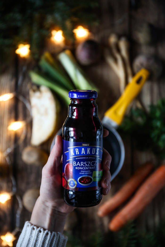 Barszcz ukraiński to jedno z tych dań, które w każdym domu przygotowuje się inaczej : ) W moich rodzinnych stronach przepis różni się nawet w zależności od pory roku. W świątecznej wersji, aby smak był bardziej dostojny, obowiązkowo gotujemy go z dodatkiem suszonych grzybów, a naszym ulubionym dodatkiem niezmiennie jest biała fasolka. Przed Świętami zapewne nie macie głowy i czasu do przygotowania buraczanego zakwasu, dlatego dziś proponuję Wam wersję błyskawiczną, która jest równie smaczna : )