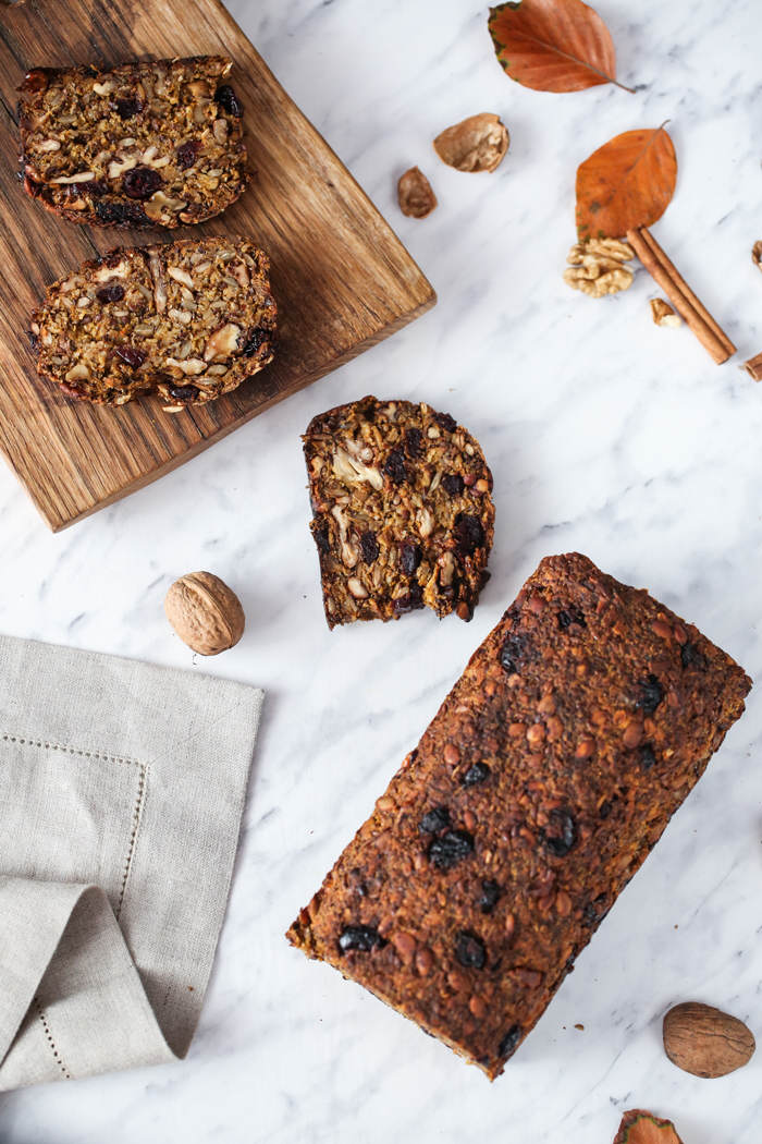 Dyniowy chleb z nasion, orzechów i żurawiny