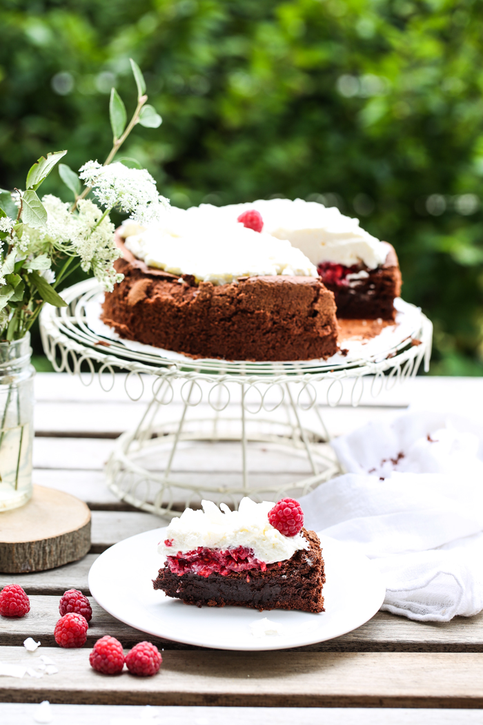 Nie mogę uwierzyć, ale właśnie dziś blog kończy 10 lat! Wyjątkowa okazja wymaga wyjątkowego ciasta jakim jest Malinowy Wulkan. Obłędnie czekoladowe ciasto, bez dodatku grama mąki, co czyni je idealnym również dla osób wystrzegających się glutenu, przypomina bardzo lubiane przez Was szwedzkie ciasto Kladdkaka. Dodatkiem dopełniającym całości są świeże maliny i kokosowy krem na bitej śmietanie. Czego chcieć więcej? ; ) Polecam!!!