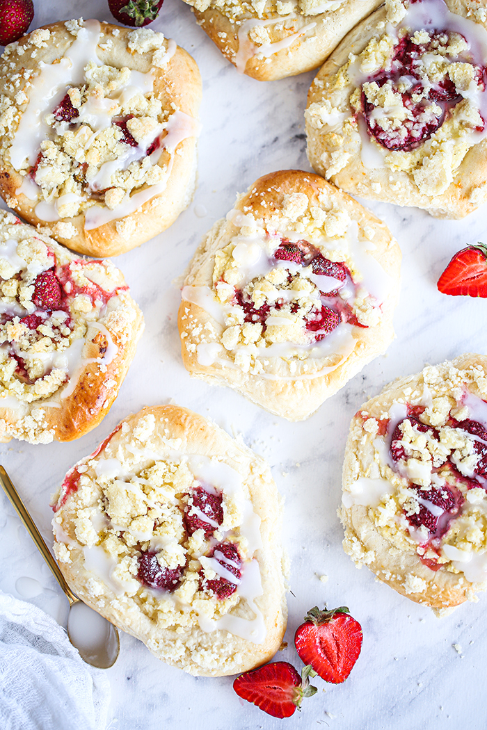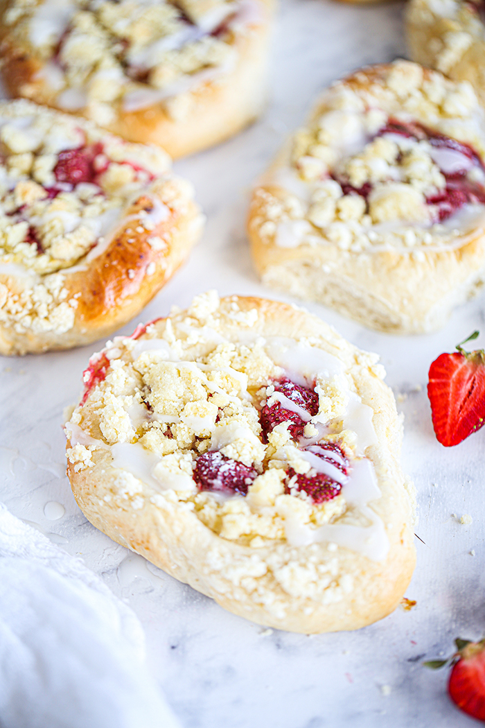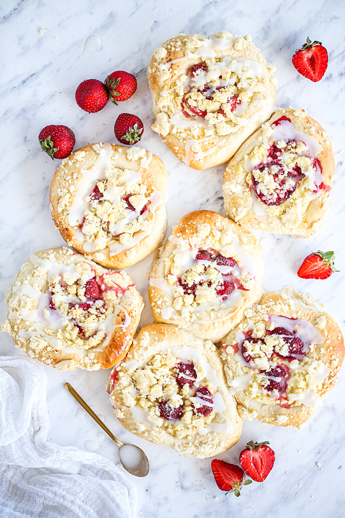 Najlepsze letnie drożdżówki z serem, truskawkami i kruszonką. Idealnie puszyste, świetnie sprawdzą się na piknik, czy drugie śniadanie w towarzystwie szklanki zimnego mleka. Sezon truskawkowy w pełni, więc koniecznie wypróbujcie, bo w planach mam już kolejne odsłony wypieków z truskawkami w roli głównej. Dodatkowo zostałam zaproszona do współpracy z portalem Przepisy.pl, który jest prawdziwą skarbnicą inspiracji nie tylko jeśli chodzi o przepisy z truskawkami. Mam nadzieję, że również mój przepis przypadnie Wam do gustu i zdobędzie uznanie czytelników : ) Polecam!!!