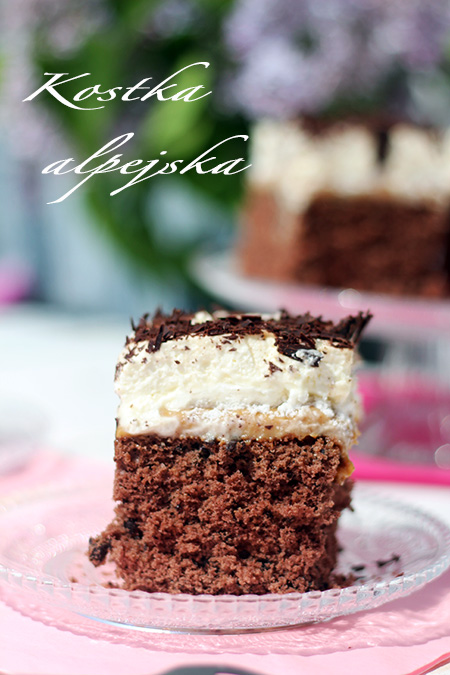 Od kiedy moja przyjaciółka ugościła mnie tym ciastem nazwanym przez nią kostką alpejską, wprost nie mogłam o nim zapomnieć ; ) Zamysł ciasta mniej więcej pozostał, choć modyfikowałam otrzymany od Karoliny przepis przygotowując spód na czekoladowo-biszkoptowym cieście, na wierzchu uwzględniając składniki z moich domowych zasobów i upodobań : ) Polecam ; )