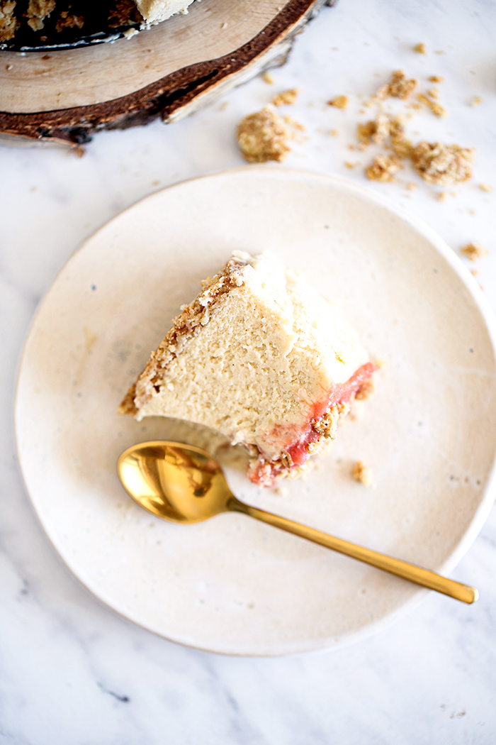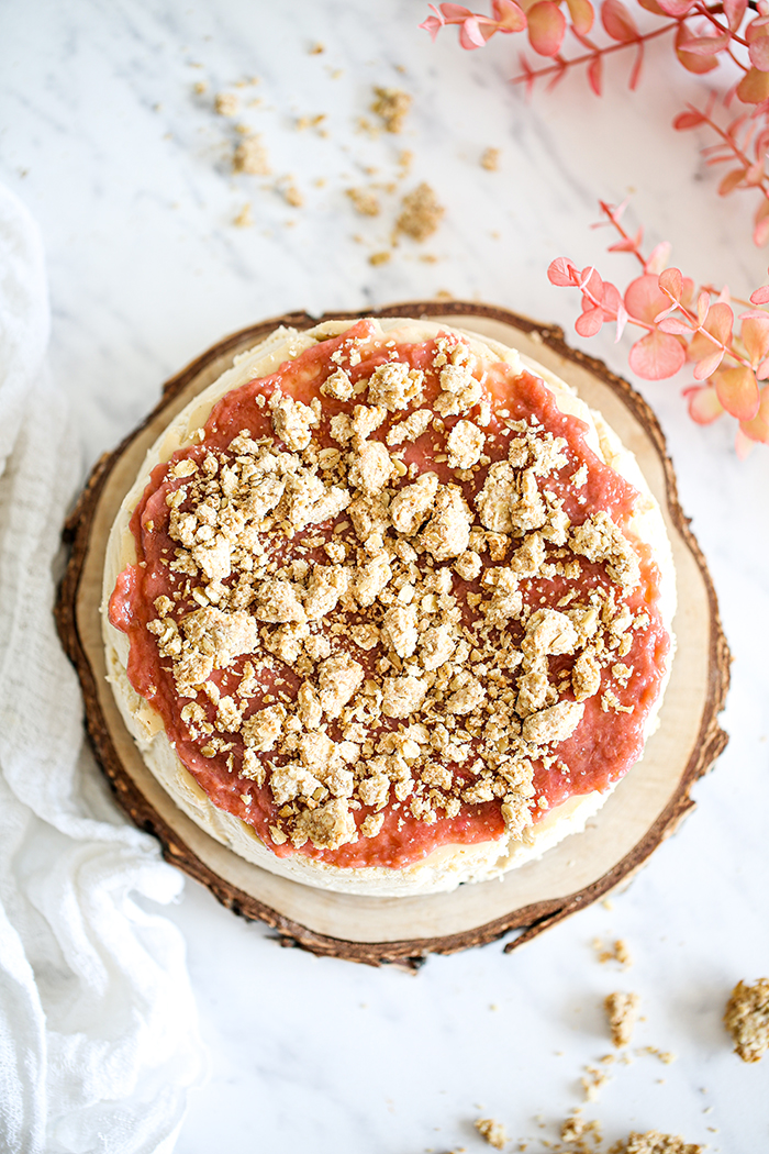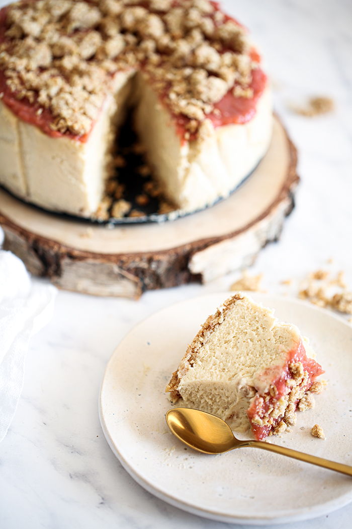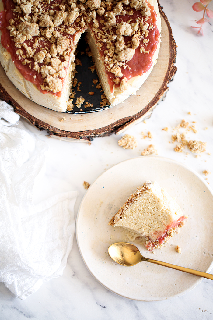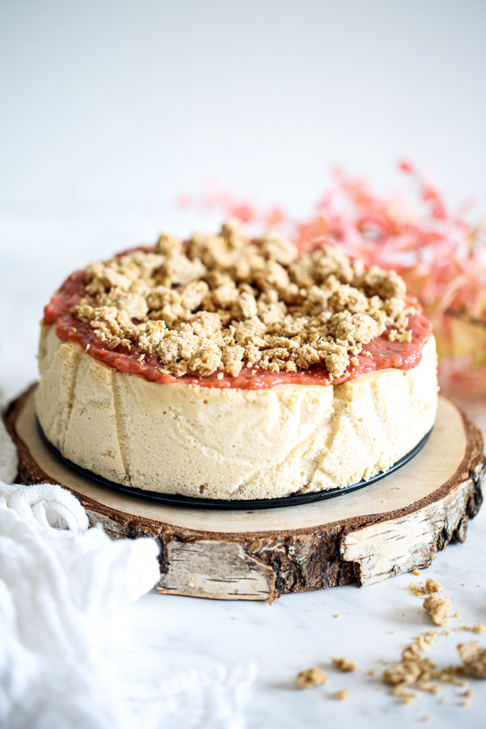 Kremowy sernik z rabarbarem i kruszonką to idealne ciasto na lato : ) Nie za słodkie, z dodatkiem pysznej owsianej kruszonki, a dzięki długiemu pieczeniu w niskiej temperaturze aksamitne i delikatne, wprost rozpływa się w ustach. Polecam!