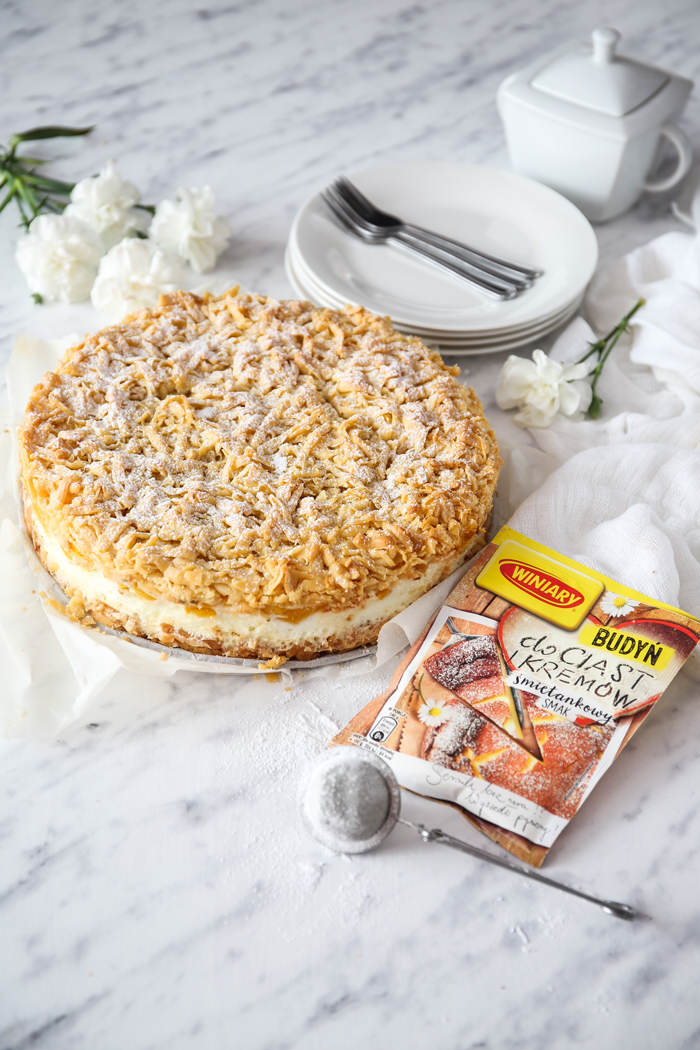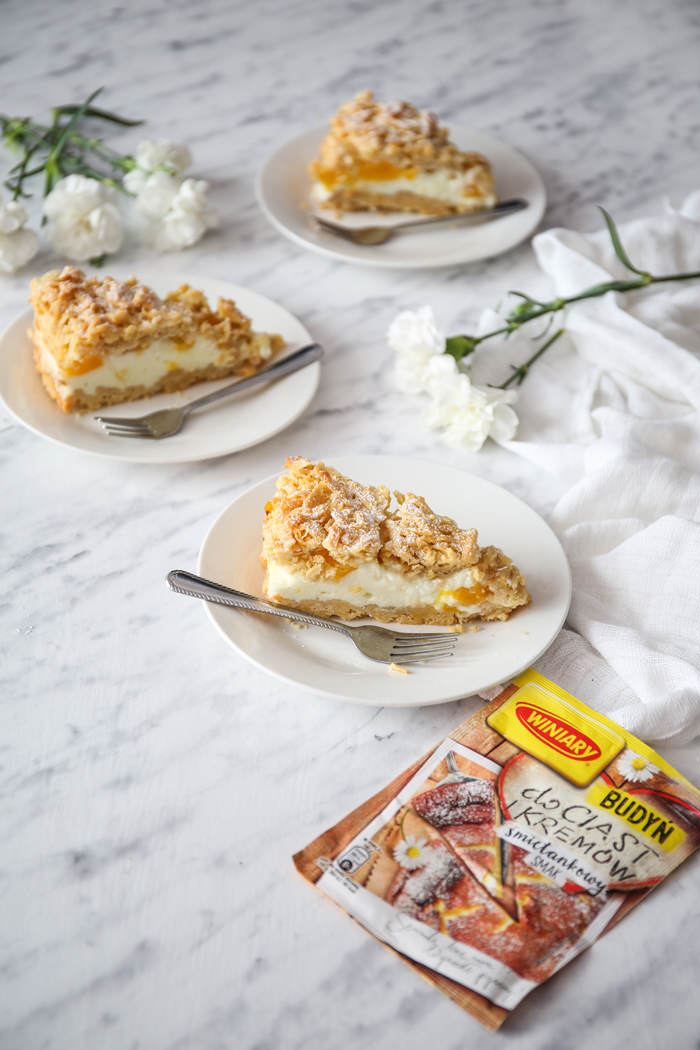 Wygląda przepięknie 🙂 Czy może być po prostu zwykły budyń śmietankowy? Winiary oczywiście 😉 Ja robię podobne ciasto ale z jabłkami w roli głównej 🙂 Mniam