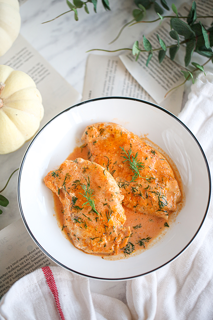 Przepyszny kurczak w kremowym sosie pomidorowo-koperkowym to super pomysł na obiad w 15 minut. Polecam!!!