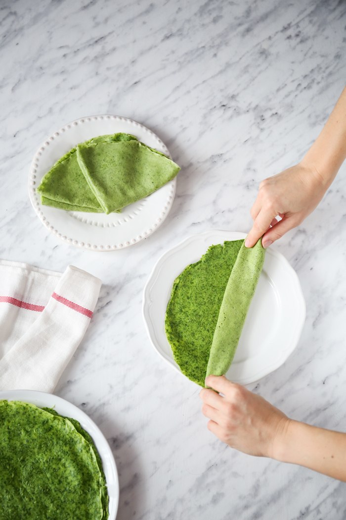 Dobrze jest rozpocząć dzień od naleśników, zwłaszcza tych w pięknym zielonym kolorze : ) Naturalnym barwnikiem jest tu oczywiście szpinak i jest to idealny pomysł, aby „przemycić” go do śniadania lub obiadu w przypadku, gdy Wasze pociechy (i nie tylko) za nim nie przepadają : ) Naleśniki świetnie smakują w wersji wytrawnej np. z dodatkiem twarożku, szczypiorku i łososia. W takiej opcji możecie również zwinąć je w roladki, pokroić i podawać jako przekąskę na imprezie. Nie byłabym sobą gdybym nie zjadła ich w wersji na słodko w towarzystwie czekoladowego kremu i bananów (po uformowaniu w trójkąty podsmażyłam dodatkowo na patelni – pycha : ) ) Dzieciom smakują nawet bez dodatków! Polecam!!!