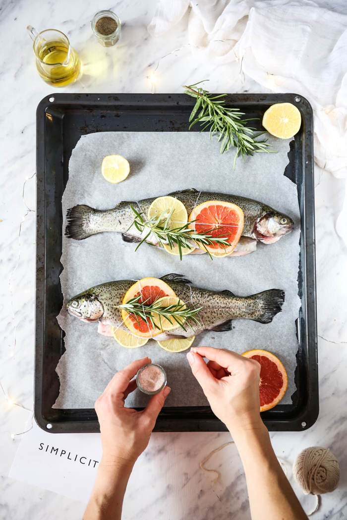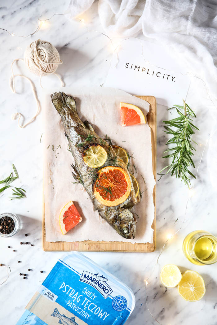 Pamiętam jak w dzieciństwie ryby pojawiały się u nas na obiad w każdy piątek i być może dzięki tej wyczekiwanej przez nas tradycji zawsze smakowały wyjątkowo : ) Dziś jemy je zdecydowanie częściej, na obiad lub w roli lekkiej kolacji. Pstrąg jest nie tylko smaczny i błyskawiczny do przygotowania, ale również bardzo zdrowy. To świetne źródło białka i kwasów omega-3, które wspomagają pracę serca, wzmacniają kości i naturalną odporność organizmu. Jego delikatny smak sprawia, że moje dzieci również za nim przepadają. Wersja z piekarnika należy do moich ulubionych, ponieważ z dodatkiem świeżych ziół i podstawowych przypraw w 20 minut mamy gotowy aromatyczny i pożywny posiłek.