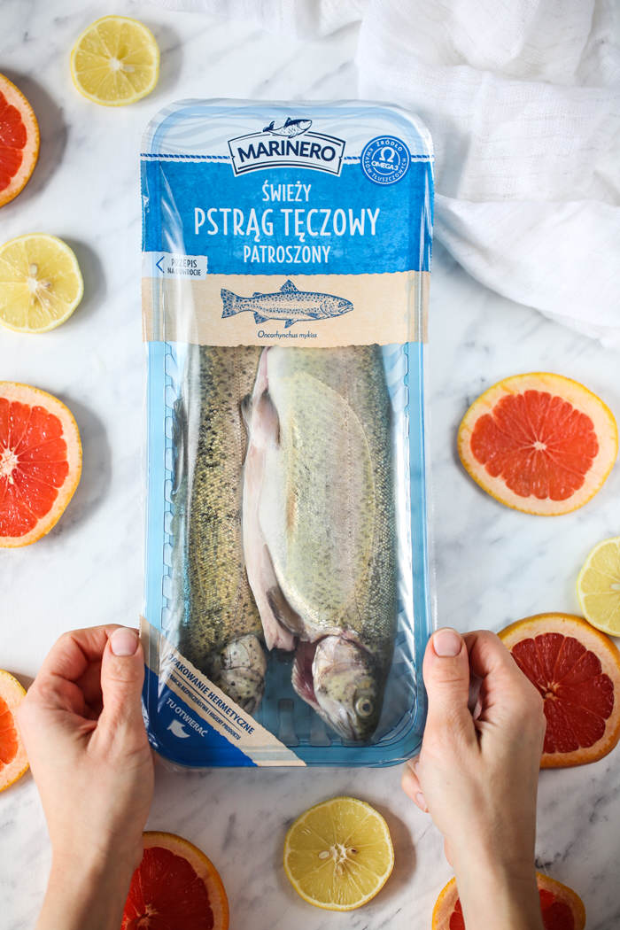 Świeży Pstrąg Patroszony Marinero jest pakowany w technologii MAP, która zapewnia świeżość ryby wraz z nieprzerwanym chłodzeniem. Duże znaczenie ma dla mnie również fakt, że pochodzi on także z naszych lokalnych gospodarstw zrzeszonych w Stowarzyszeniu Producentów Ryb Łososiowatych. Dostarczany jest codziennie do wszystkich Biedronek, więc duża dostępność w porównaniu z walorami smakowymi i zdrowotnymi sprawia, że często gości na naszym stole. Koniecznie wypróbujcie : )