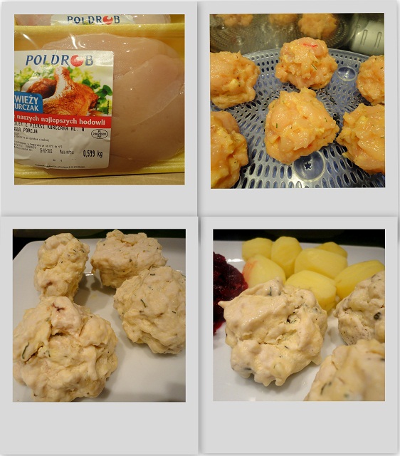 Dieta karmiącej matki stanowi dla mnie spore wyzwanie ; ) Do tej pory dania lekkostrawne rzadko gościły w naszej kuchni ; ) Uwielbiam pikantny, wyrazisty smak, dlatego delikatnego przyprawiania muszę „uczyć się” od nowa … Po dietetycznych pulpecikach z parowaru nie oczekiwałam zbyt wiele, ale wyszły bardzo smaczne! Na pewno jest to ciekawa alternatywa dla gotowanego mięsa : ) Delikatny smak kurczaka dobrze komponuje się z majerankiem i koperkiem.