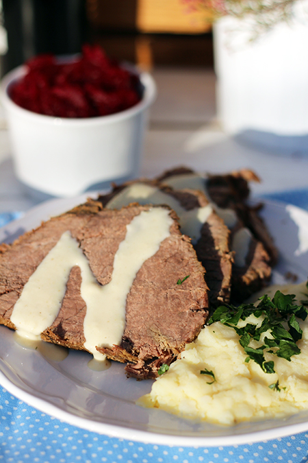 Sztuka mięsa w chrzanowym sosie to przepis, który znalazłam w książce Ewy Wachowicz – Ulubione. Do tej pory rzadko przygotowywałam dania z wołowiny, (nie licząc steków, które należą do ulubionych mojego męża ; ) bo zawsze wydawała mi się trudna w obróbce. To danie jest nie tylko bardzo proste do przygotowania, ale także pyszne i od razu skojarzyło mi się z tradycyjnymi daniami, które miałam okazję jadać u babci ; ) Polecam!!!
