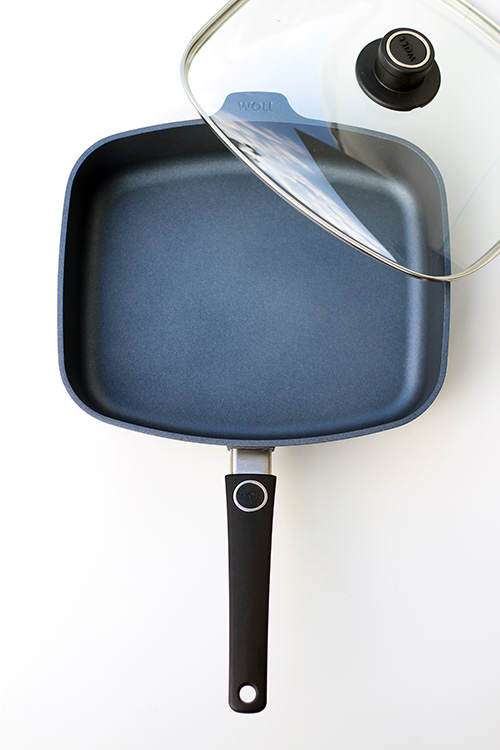 Bardzo odpowiada mi jej prostokątny kształt i wymiary 26 x 30 cm, które umożliwiają przygotowanie sporych porcji dla 4 łasuchów ; ) Dzięki temu, że jest ona dość wysoka (7 cm) poza smażeniem z powodzeniem wykorzystuję ją do duszenia i przygotowywania tzw. dań jednogarnkowych. W zestawie dołączona jest szklana pokrywa z hartowanego, polerowanego i żaroodpornego szkła odpornego do temp. nawet 250 C.