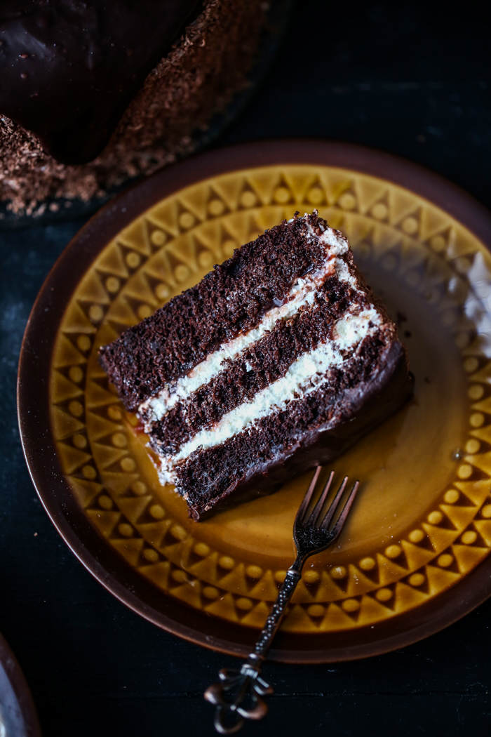 Wilgotny czekoladowy tort przełożony kremem śmietankowym i powidłami idealnie sprawdzi się na nadchodzący Dzień Babci i Dziadka. Tort jest prosty i szybki do przygotowania, a do tego naprawdę pyszny. Idealnie wyważony, nie za słodki. Ponieważ nasza wersja była przeznaczona również dla dzieci zrezygnowałam z kawowego likieru na rzecz mocnej kawy, więc jej posmak był wyczuwalny, ale nie dominował całości. Polecam!!!