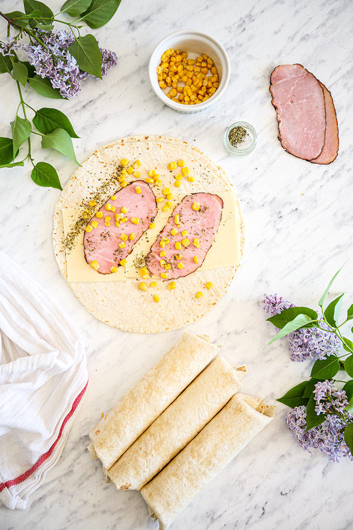 Tortillki, czyli tortille z szynką, serem i kukurydzą to klasyczna przekąska do podania na imprezie. Smakuje zarówno dzieciom jak i dorosłym, więc zawsze błyskawicznie znika ze stołu. Proste i szybkie do przygotowania, sprawdzą się również jako codzienna przekąska. Polecam!!!