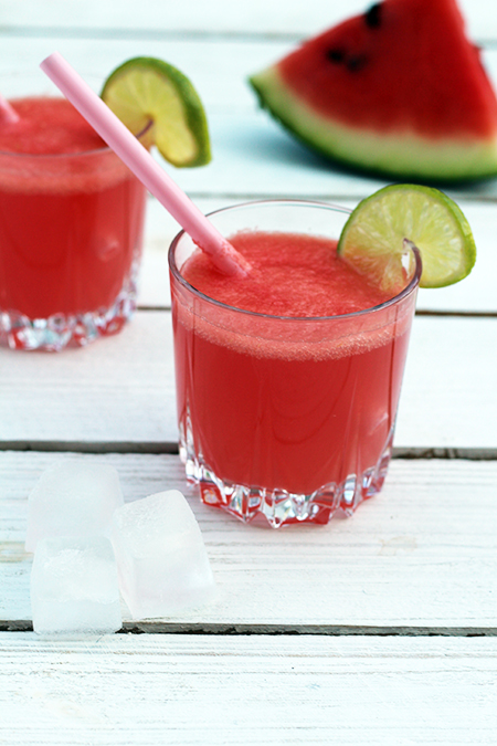 Lemoniady stanowią idealne orzeźwienie w letnie dni. Do tej pory zdecydowanie przeważały u nas lemoniady na bazie cytryny, limonki lub pomarańczy, lecz tym razem w roli głównej występuje arbuz ; ) Wszyscy miłośnicy jego smaku na pewno będą zadowoleni! Dodatkową korzyścią jest fakt, że arbuz ma dobry wpływ na skórę, działa bowiem przeciwzmarszczkowo, tonizująco i ściągająco, pomaga przy leczeniu stanów zapalnych ; ) Polecam ; )