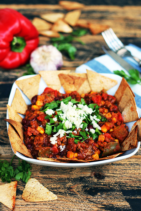 Chili con carne i domowe nachosy