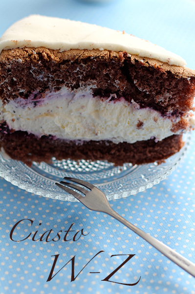Przedstawiam Wam obiecany przepis na ciasto W-Z, które stanowiło środek mojego tortu z pieskiem ; ) Na szczęście udało mi się przechwycić kawałek do sfotografowania, pomimo że tort zniknął błyskawicznie ; ) WZ-kę na pewno znacie i normalnie pieczemy ją w kwadratowej blasze, ale jako tort również sprawdziła się wyśmienicie. Puszyste czekoladowe ciasto, przełożone nie za słodką, śmietanową masą pasuje idealnie, kiedy mamy ochotę na lżejszy torcik. Przepis podejrzałam u Margarytki, przygotowuje się go bardzo szybko, więc gorąco polecam!!!
