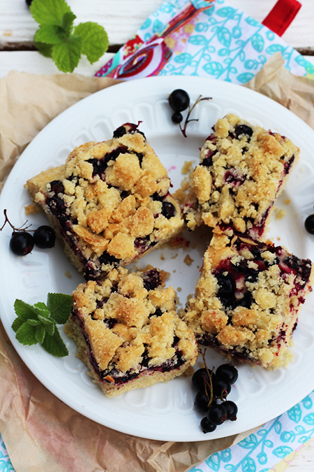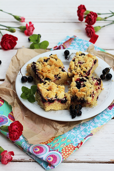 Uwielbiam lato! Wszystkie stragany wyglądają teraz tak pięknie i kusząco, aż trudno przejść obojętnie : ) Tym razem nie mogłam się oprzeć czarnym porzeczkom, których 100 g pokrywa prawie 260% dziennego zapotrzebowania na witaminę C – jednego z najcenniejszych przeciwutleniaczy ; ) Dodałam je do błyskawicznego i pysznego ciasta, które miałam okazję spróbować u Edyty i od tej wizyty nie mogłam o nim zapomnieć : ) Zazwyczaj nie przepadam za ucieranymi ciastami, ale to jest tak delikatne, wilgotne, że podbije każde serce. Polecam!