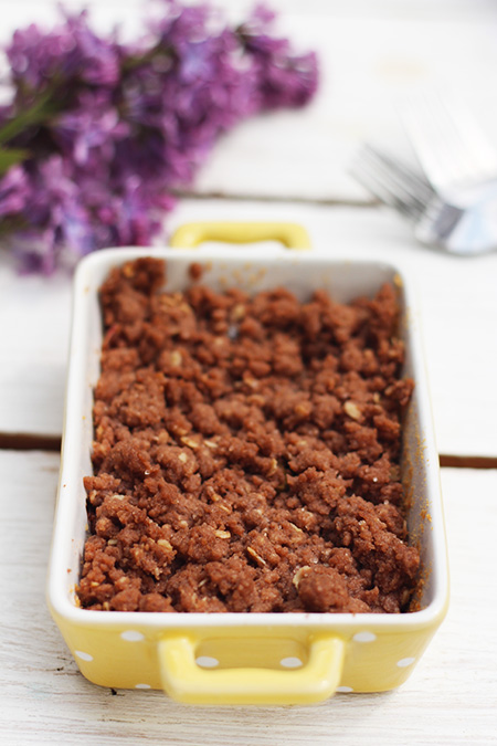 Kiedy byłam mała nie przepadałam za rabarbarem (za innymi kwaskowatymi owocami zresztą też…; ) Na szczęście moja Mama znalazła skuteczny sposób, abym szybko zmieniła zdanie, przygotowując dla mnie rabarbar pod kruszonką. Teraz skutecznie wykorzystuję ten patent do zapoznania mojej Córki z owocami, których pozornie nie lubi. Crumble uwielbiam nie tylko za prostotę i szybkość przygotowania, ale również za nieograniczone możliwości komponowania różnych dodatków, zarówno do owocowej jak i kruszonkowej części. Świetna zabawa dla całej rodziny ; ) Polecam!!!