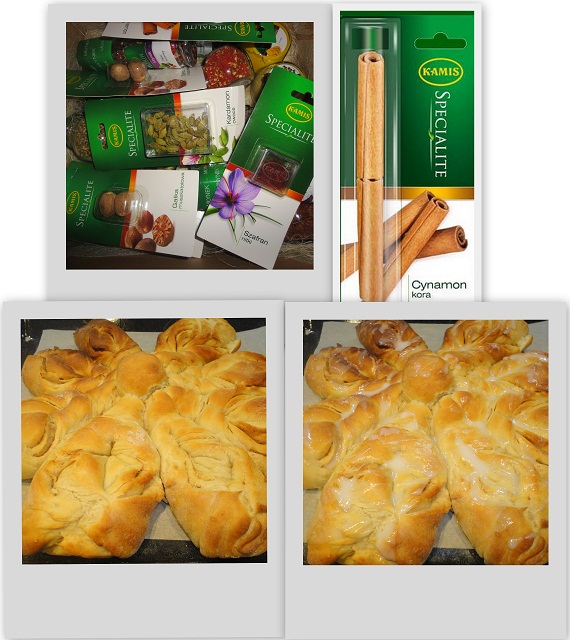 Już drugi raz mam okazję testować produkty marki Kamis z linii specialite ; ) Ostatnio moje serce podbiły nietypowe musztardy (z zielonym pieprzem,  czerwonym winem, czy płatkami wędzonej papryki), więc tym razem postanowiłam zacząć od wypróbowania czegoś na słodko : ) Na blogu wypiekizpasja.blox.pl znalazłam przepis na cynamonowe bułeczki. Wyglądały tak zachęcająco, że nie mogłam się oprzeć. Autorka użyła co prawda mielonego cynamonu, ale moim zdaniem kora cynamonu starta na tarce, lub zmielona w blenderze jest o wiele bardziej wyrazista ; ) Użyłam zaledwie połowy z mojego blistra, a w całym domu unosił się ten niezwykły aromat. Gorąco polecam jako pyszną przekąskę lub słodkie śniadanie : ) Ciasto jest bardzo puszyste i delikatne, do nadzienia bardzo dobrze komponowałyby się również małe kawałki jabłek.