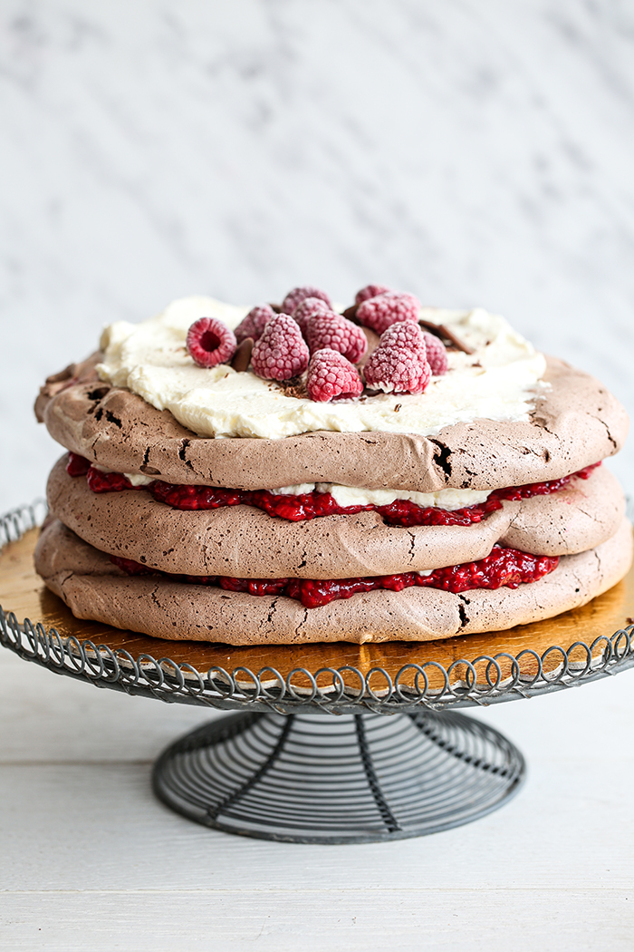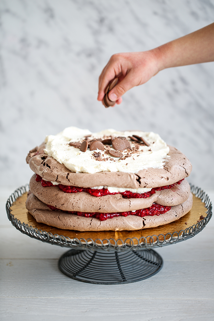 Dla wszystkich miłośników bezowych wypieków, tort w wersji czekoladowej. Pyszne połączenie słodkiej bezy z kwaskowymi malinami i bitą śmietaną. Polecam!!