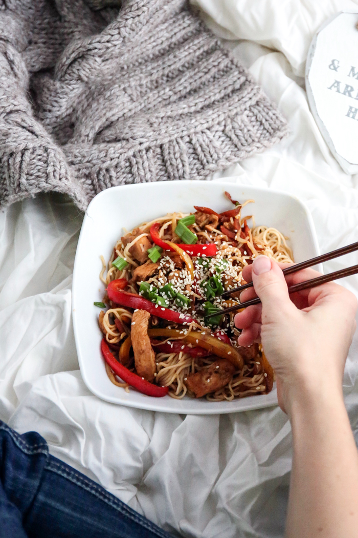 Bardzo lubię, kiedy mój Mąż wkracza do kuchni, nawet jeśli najczęściej oznacza to, że dopadło mnie akurat jakieś przeziębienie : ) Domowy „chińczyk” to prosty i błyskawiczny obiad, który zapewnie nie ma zbyt wiele wspólnego z tradycyjną kuchnią chińską, ale i tak jest uwielbiany przez wszystkich naszych domowników : ) Polecam!!!