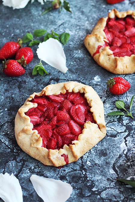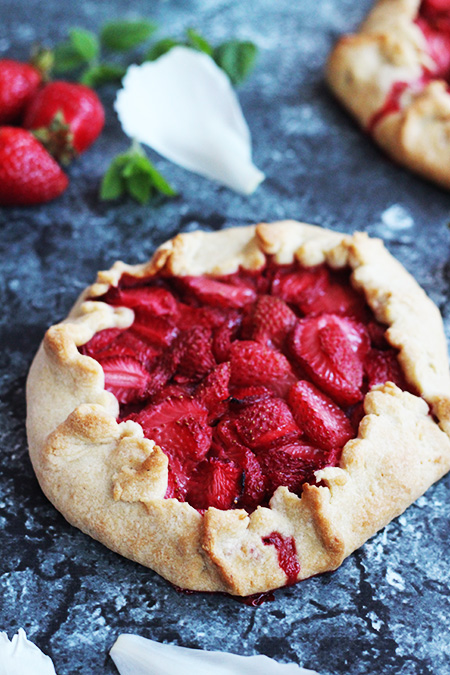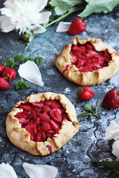 Galette to rodzaj rustykalnej tarty pieczonej bez formy, dzięki czemu otrzymujemy charakterystyczne, nieregularne brzegi. Nazwa wywodzi się z kuchni francuskiej i moim zdaniem jest to najprostsza z możliwych tart. Osobiście tak mnie ta forma przygotowania urzekła, że piekę ją co najmniej raz w tygodniu (sezon truskawkowy trwa przecież tak krótko, że nie zdąży mi się znudzić… ; ) Gorąco polecam!!!