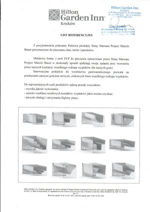 • Profesjonalizm potwierdzony referencjami: Formy Marxam mają oficjalny list referencyjny od szefów kuchni z Hilton Garden Inn w Krakowie. Sprawdzają się w prestiżowej restauracji, więc w naszych domowych kuchniach tym bardziej będą niezastąpione.
