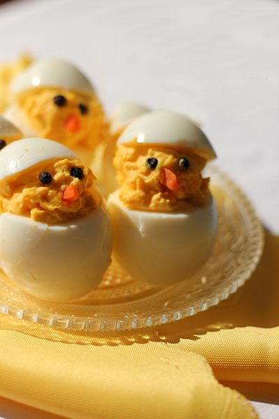 Faszerowane jajka są u nas popularne nie tylko na Wielkanoc, ale także przy okazji różnych imprez (wtedy jednak standardowo przecinam je wzdłuż, zamiast podawać w formie kurczaczków ; ) Bardzo lubię je przygotowywać ze względu na szybkość oraz różnorodność farszy, które możemy wymyślić, tak aby każdy znalazł coś dla siebie ; )