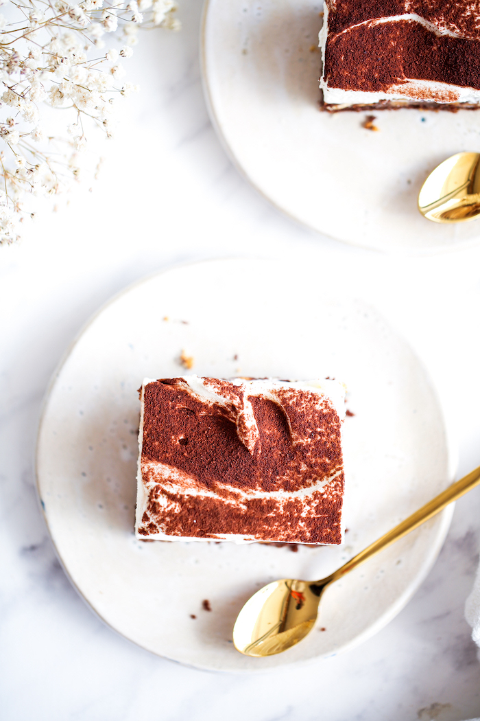 Wszystkie składniki (poza kakao) zmiksować do uzyskania gęstego kremu. Przełożyć na orzechową warstwę, wyrównać i udekorować kakao.