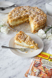 kruche ciasto z brzoskwiniami i budyniowa pianka