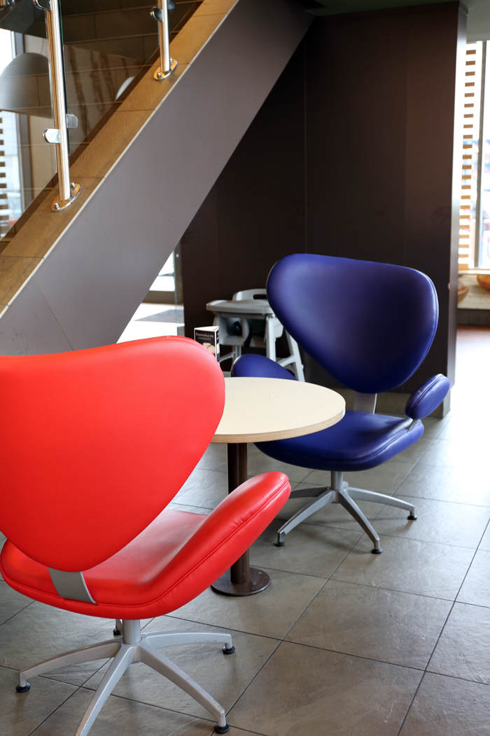 Nowoczesny design sali i oczywiście możliwość segregacji śmieci.