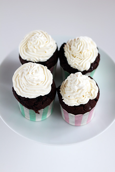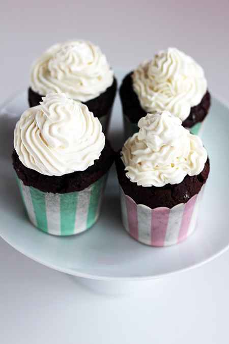 Nie mogłam się powstrzymać, aby nie zatytułować dzisiejszych babeczek najlepszymi ; ) Jestem oczywiście wielką miłośniczką cupcake’ów, więc wbrew pozorom nie tak łatwo skraść moje serce w tym temacie (wierzcie mi zjadłam ich bardzo, bardzo wiele : ) Poniższy przepis to wersja podstawowa, którą możecie dowolnie modyfikować przez dodatek dżemu, owoców, czy bakalii. Jak dla mnie smakują świetnie bez dodatków, także w formie klasycznej muffinki, jeśli pominiemy krem. Polecam!!!