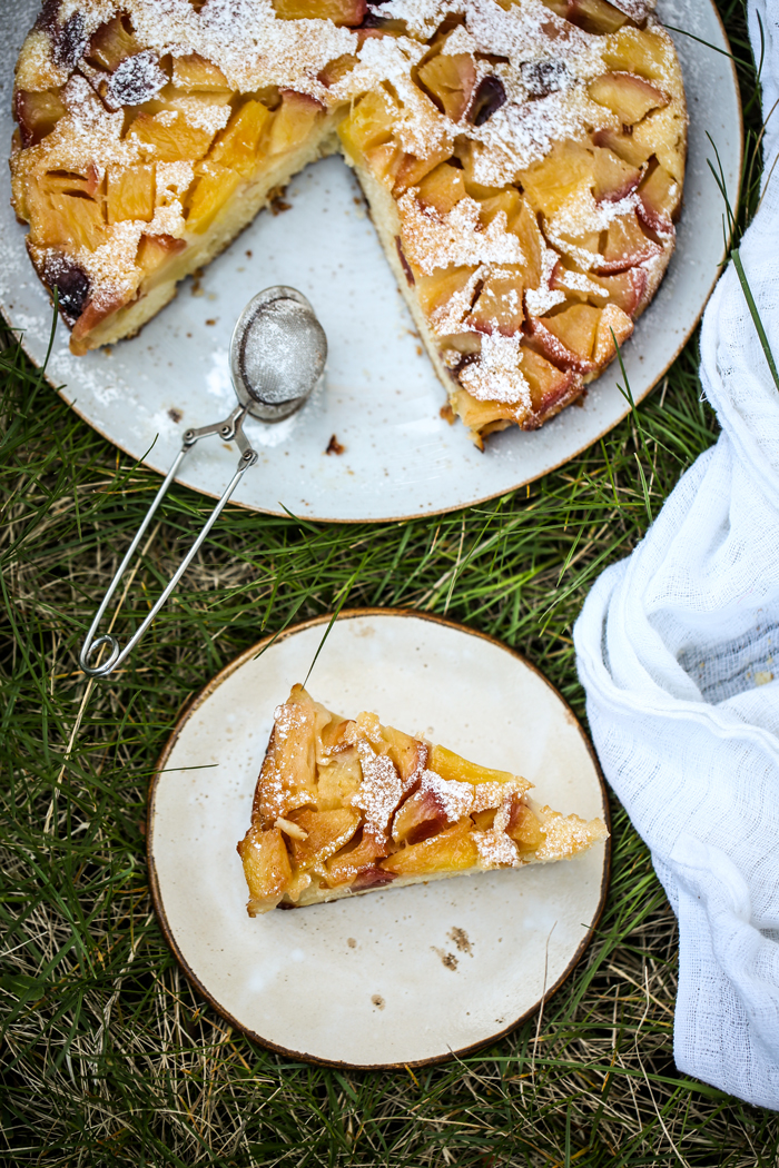 Odwrócone ciasto z owocami to nic innego jak pyszny, maślany biszkopt z dodatkiem ulubionych owoców. Jest błyskawiczne i proste do przygotowania, bez użycia miksera, więc sprawdzi się podczas wspólnego pieczenia z dziećmi : ) Sposób pieczenia do góry nogami, czyli owoce na dole, które następnie zalewamy ciastem, zapewnia nam jego delikatność, ponieważ soki z owoców nie wsiąkają w biszkopt : ) Sposób i pomysł na ciasto podejrzałam na stories u Marty. Polecam!!!