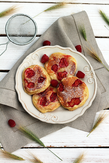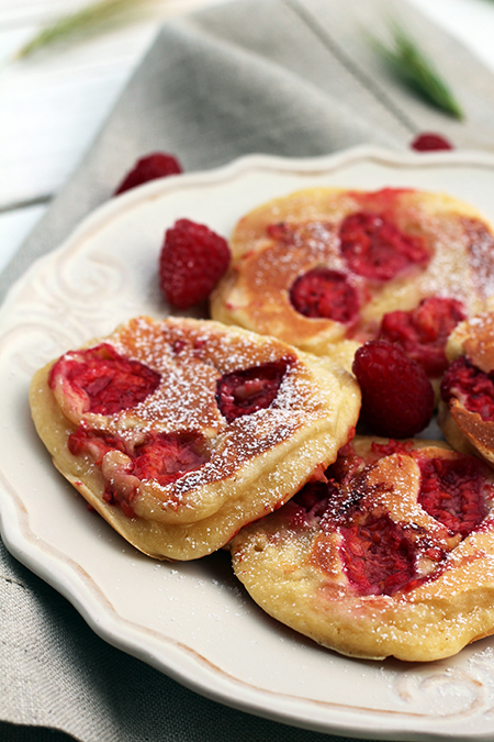 Ostatnio bardzo chętnie zamiast standardowych obiadów zajadamy się różnymi wersjami placków z dodatkiem świeżych owoców. Tym razem Szwagierka zainspirowała mnie placuszkami na bazie jogurtu. W mojej wersji użyłam malin, ponieważ pomimo upałów spora część rodziny zmaga się obecnie z przeziębieniem, a jak wiecie maliny są bogate w witaminy, zwiększają odporność i pomagają w zwalczaniu infekcji ; ) Placuszki są pyszne i szybkie do przygotowania, więc sprawdzą się także jako przekąska lub śniadanie. Polecam!!!