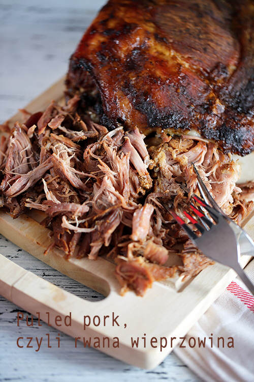 Pulled pork, czyli pieczona wieprzowina, która dosłownie rozpływa się w ustach. W ostatnim czasie stanowi jedno z naszych ulubionych dań obiadowych. Za każdym razem doprawiamy ją inaczej, ale zawsze wychodzi pysznie ; ) Jej przygotowanie jest bardzo proste, więc nie zrażajcie się długim czasem marynowania i pieczenia. Polecam!!!