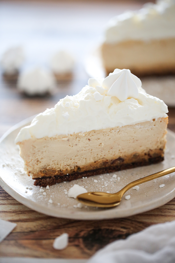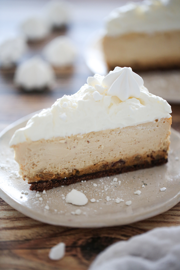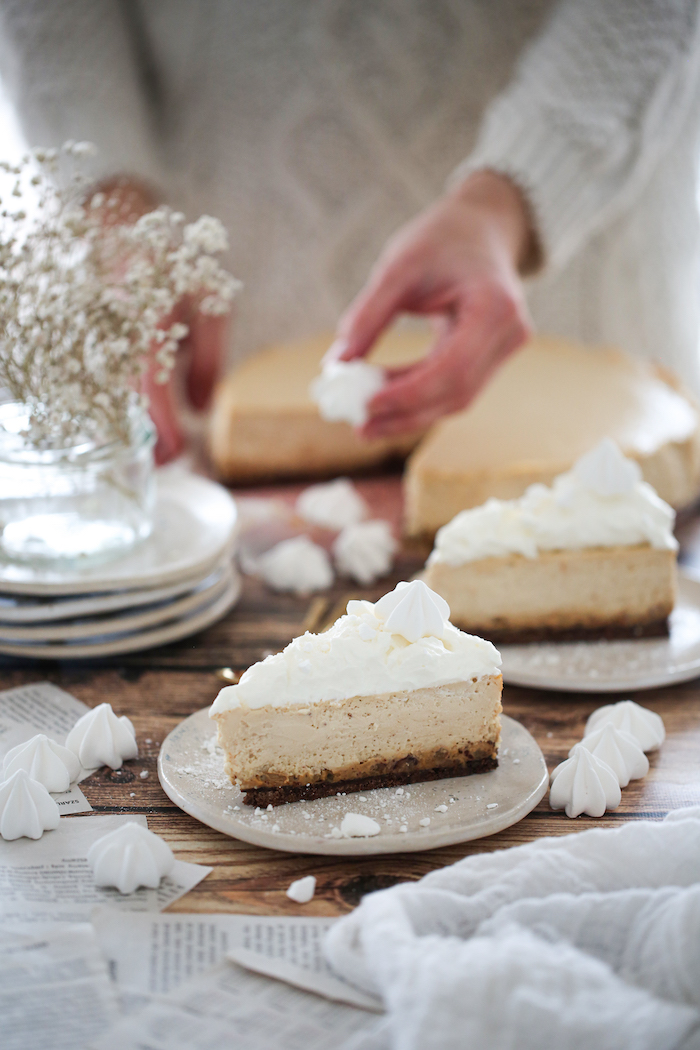 Sernik Dacquoise – obłędnie kremowy z kajmakiem, daktylami i orzechami, na pysznym i chrupiącym spodzie. Sernik jest rewelacyjny, długo zachowuje świeżość, bo dzięki kajmakowej warstwie, czekoladowy spód nie traci na chrupkości. Podałam go z bitą śmietaną i bezikami, ale tak naprawdę jest tak pyszny, że dodatkowa oprawa nie jest mu potrzebna, choć na pewno ucieszy wszystkie dzieci i dorosłych miłośników bitej śmietany ; ) Pozycja obowiązkowa, polecam!!!