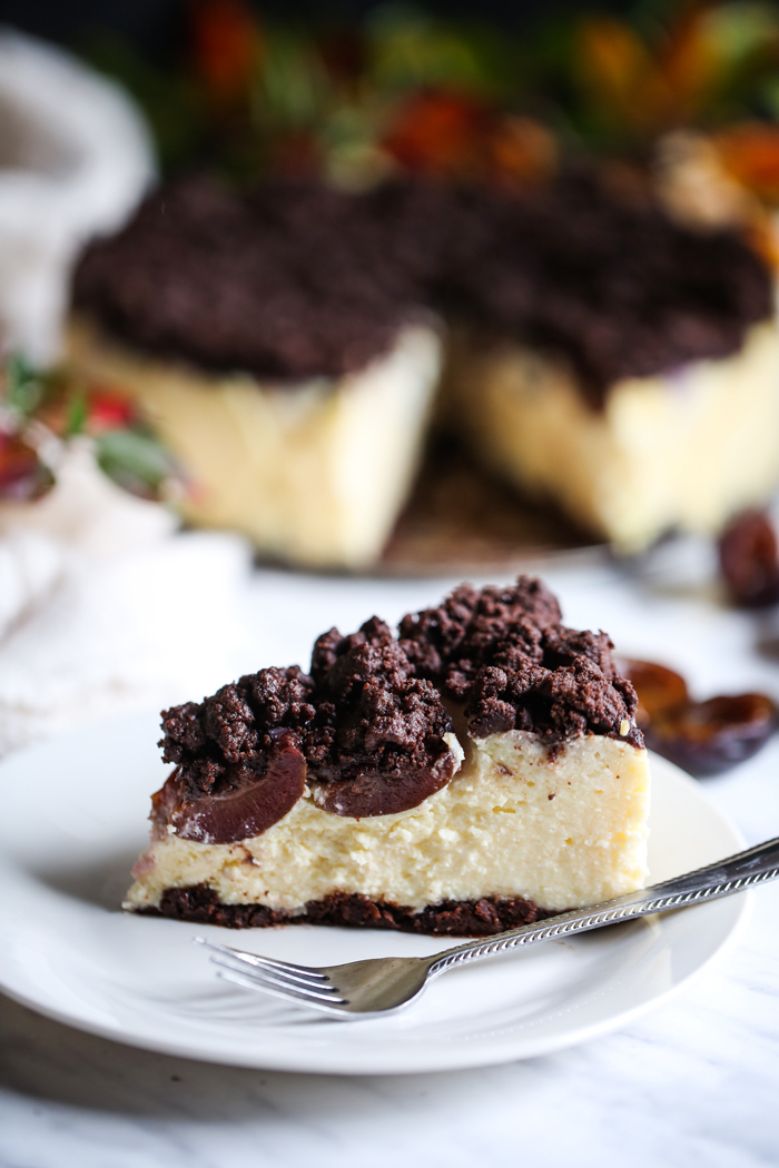Bardzo prosty sernik ze śliwkami, kakaowym spodem i kruszonką. Przypomina trochę sernik królewski, ale dodatek ricotty sprawia, że jest lżejszy i bardziej delikatny. Gdy tylko ujrzałam go w książce „Moje wypieki na 4 pory roku” wiedziałam, że podbije nasze serca. Polecam!!!