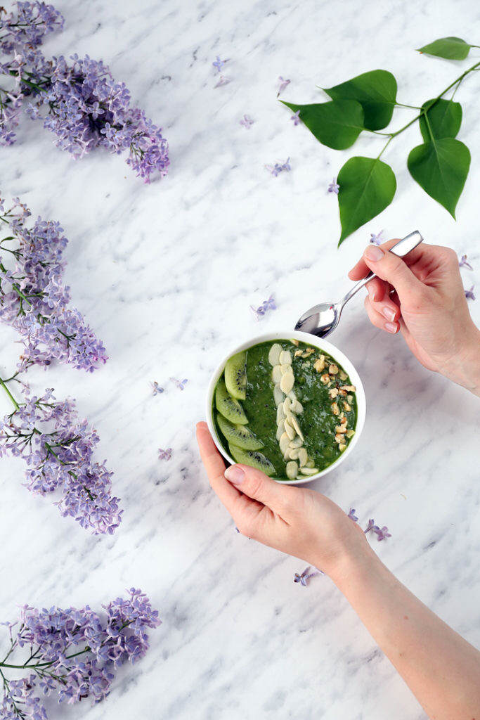 Jestem wielką miłośniczką koktajli, ale zjedzenie śniadania w postaci napoju raczej do mnie nie przemawiało ; ) Co innego takie smoothie w miseczce…wiem, że to tylko inna forma podania, ale wtedy wszystko wydaje się lepiej pasować ; ) Dzisiaj smoothie w zielonej odsłonie, duży zastrzyk energii i witamin od rana, świetnie sprawdzi się jeśli aktywnie rozpoczynacie dzień. Polecam!!!