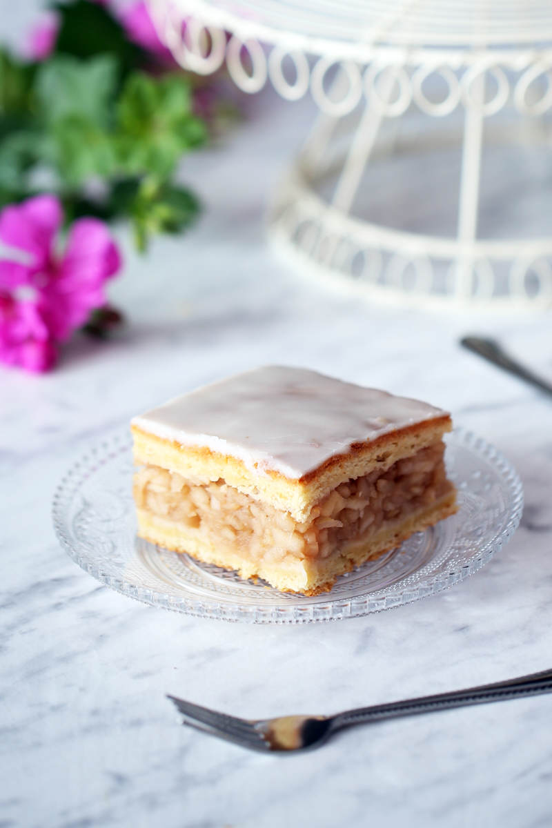 Uwielbiam takie ciacha 🙂 szarlotka mojej Babci wyglądała tak samo, ten równiutki lukier ….