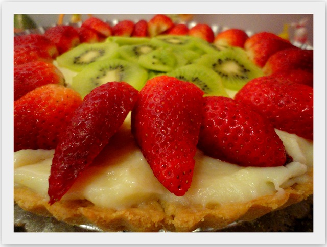Bardzo lubię tarty i kruche ciasta zwłaszcza z owocami ; ) Tym razem postawiłam na wersję z budyniem i obawiałam się, że całość będzie zbyt słodka, więc przygotowałam go z minimalnym dodatkiem cukru, bardziej w stylu wytrawnym. Goście byli zadowoleni, jednak osobiście jako miłośniczka bardzo słodkich wypieków stwierdziłam, że był to błąd i na pewno powtórzę ten wypiek, ale w słodszej wersji ; )