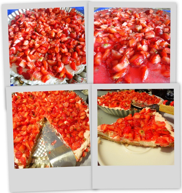 Przepis otrzymałam od koleżanki, która zachęcając wspomniała, iż ciasto podbiło serca rodziny i znajomych. Myślałam, że będę musiała wstrzymać się do następnego lata, ale na szczęście udało mi się znaleźć truskawki i to w całkiem przystępnej cenie ; ) Tarta była rzeczywiście pyszna, podałam ją w ramach mojej imieninowej „kawy”, jedyną wadą, którą o niej usłyszałam była zdecydowanie za mała wielkość ; )