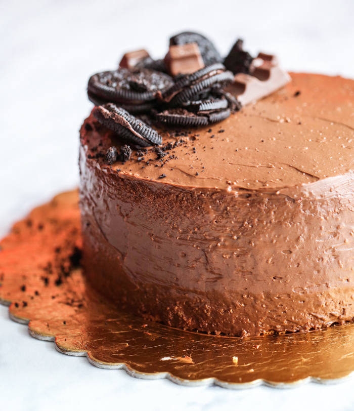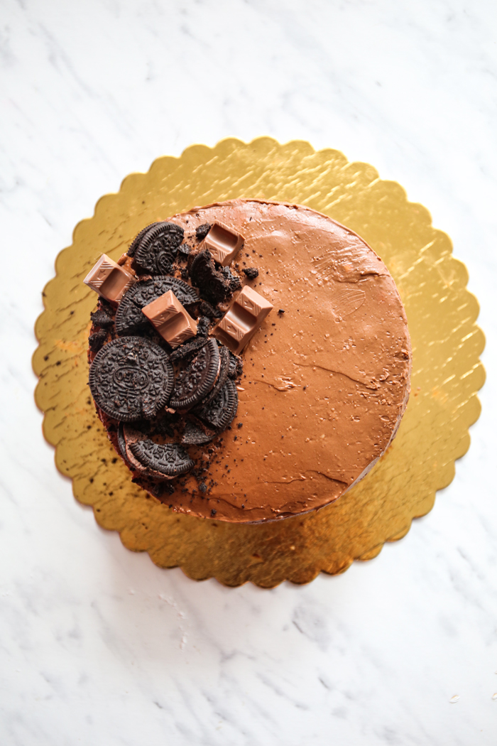 Przestudzony biszkopt przekroić na trzy blaty. Pierwszy z nich ułożyć na paterze, skropić kawą i posmarować połową dżemu. Nałożyć 1/3 kremu truflowego, przykryć drugim blatem i powtórzyć – skropić kawą, nałożyć drugą połowę dżemu i 1/3 kremu. Przykryć ostatnim blatem i udekorować pozostałą częścią kremu. Robiłam tort tuż przed podaniem, ale jeśli zależy Wam, aby tort był gładko otynkowany, najlepiej odczekać kilka godzin – schować złożony tort do lodówki, a kiedy „osiądzie” dopiero rozpocząć dekorowanie. Nałożyć cienką warstwę kremu, aby zebrał ewentualne okruszki oddzielające się od biszkoptu, ponownie schłodzić i dopiero wtedy rozpocząć końcowe tynkowanie i dekorowanie.