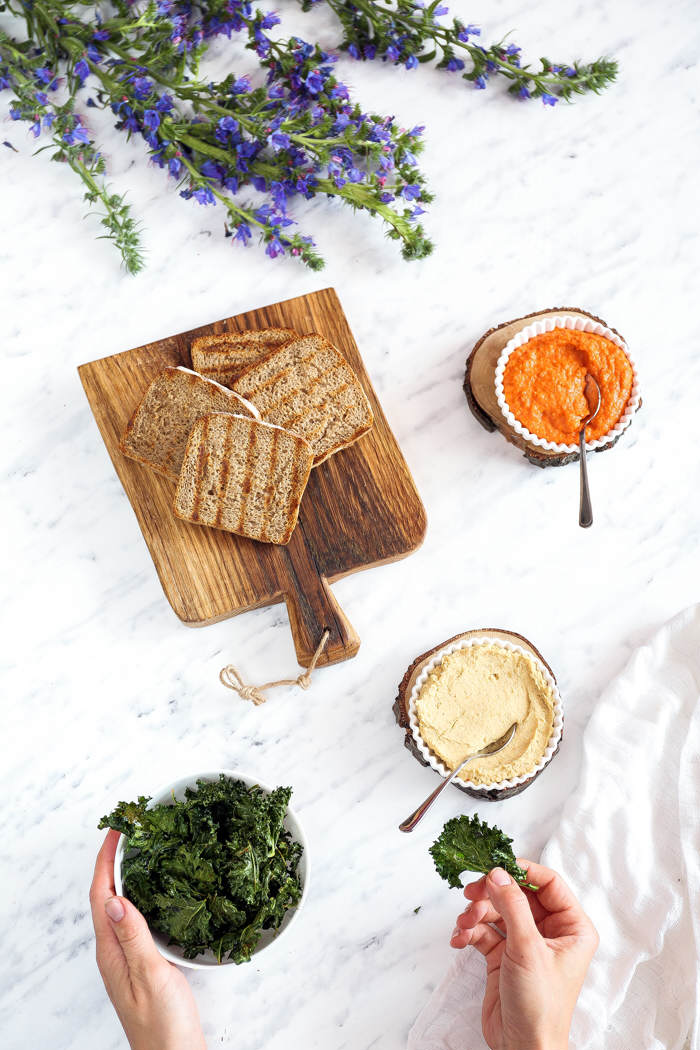 Moimi ulubieńcami w tym gronie są zdecydowanie pasta sezamowa tahini (składniki: 100% ziarna sezamu! ), ciecierzyca BIO oraz jarmuż. Nie mogłam się oprzeć, żeby od razu nie wykorzystać ich do przygotowania humusu oraz zdrowych chipsów ; )