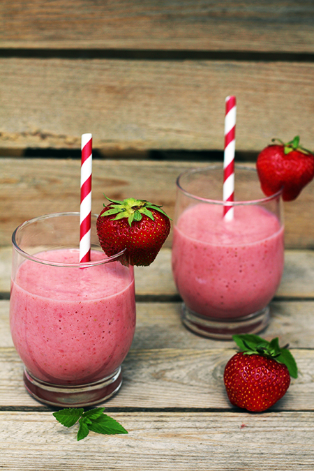 Smoothie to zdecydowanie mój ulubiony wakacyjny koktajl. Mocno truskawkowy ze słodkim posmakiem banana idealnie orzeźwia, zapewnia odpowiednią moc witamin, ale także usprawnia redukcję tkanki tłuszczowej i reguluje zawartość wody w tkance cellulitowej, ponieważ truskawki są ważnym składnikiem diety antycellulitowej ; ) Polecam!!!