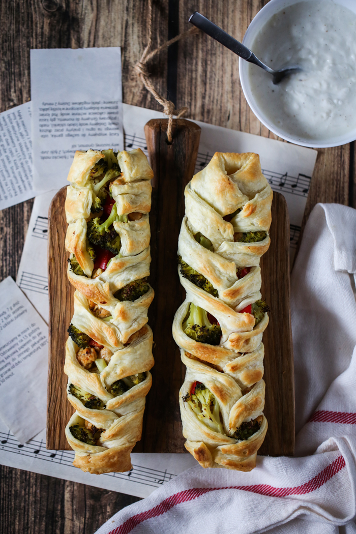 Warkocz francuski z brokułem i kurczakiem to pomysł na prosty i szybki obiad w niecodziennej odsłonie. Do środka można włożyć także inne dodatki – warzywa, czy żółty ser w zależności od naszych upodobań. Danie jest bardzo sycące, świetnie smakuje z dodatkiem jogurtowego sosu czosnkowego. Polecam!!!